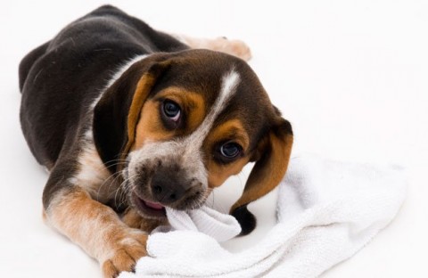 - “Dog-proof” your house. Put valuable objects away until you’re confident that your dog’s chewing behavior is restricted to appropriate items. Keep shoes and clothing in a closed closest, dirty laundry in a hamper and books on shelves. Make it easy for your dog to succeed.